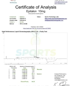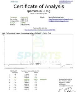 All Sports Technology Labs peptides are third-party tested by MZ Biolabs, an independent laboratory based in Arizona. Each batch is analyzed for identity, purity, and concentration. A Certificate of Analysis (COA) is provided to verify that the product meets listed specifications.